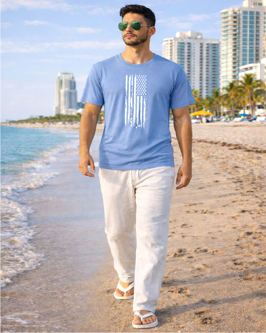 Silver American Style White Distressed Flag Inspired T-shirt